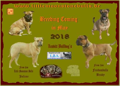 Für unseren letzten Wurf mit unserer Joline haben wir den Brody von den Freedombulls ausgesucht. Ein sehr ausgeglichener Rüde mit sehr guten Auswertungen und einer perfekten Ahnen Linie.