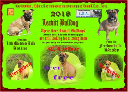 Alle Welpen bekommen von der LBA und vom Bund deutscher Bulldogzüchter eine Ahnentafel, die Welpen sind bei der Abgabe Entwurmt, Geimpft und gechipt.